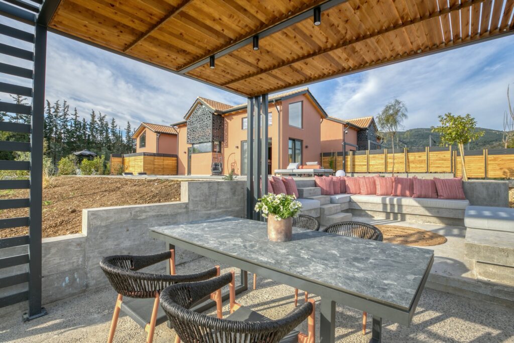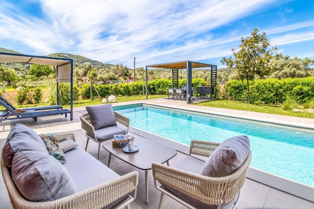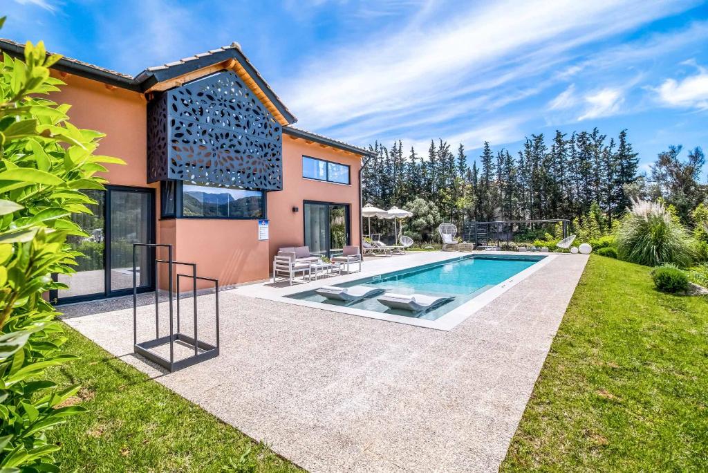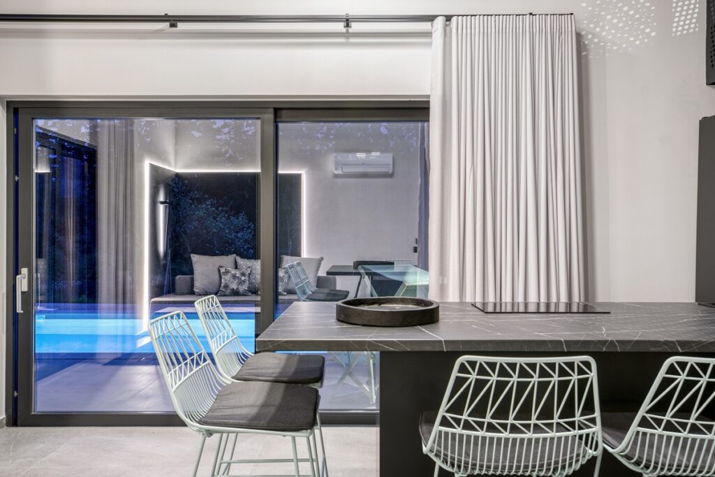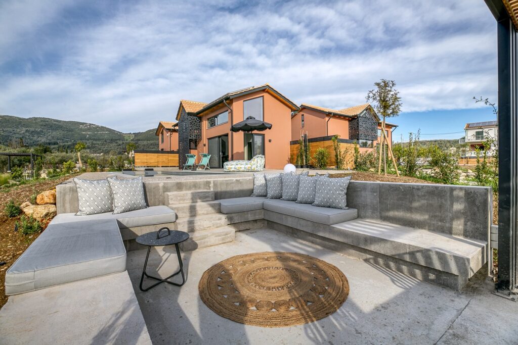 Με ένα εντυπωσιακό εξωτερικό χρώμα από τερακότα, είναι κομψό και φιλόξενο κρυμμένο σε έναν ιδιωτικό αποκλειστικό κλειστό θύλακα 4 βίλες, κοντά στα χωριά Λυγιά και Καρυώτες. Με μια καλή πισίνα και βεράντα, είναι μια απόλαυση να χαλαρώσετε γύρω από την πισίνα που περιβάλλεται από χωράφια και ελαιώνες. Το εσωτερικό έχει τον κύριο χώρο καθιστικού, τραπεζαρίας και κουζίνας με ψηλές οροφές με κομψό μοντέρνο ντιζάιν στο ισόγειο, με υπνοδωμάτιο με διπλό κρεβάτι και μπάνιο με ντους και μπαλκονόπορτες που ανοίγουν σε βεράντα. Στον ημιώροφο πάνω, προσβάσιμο από μια σκάλα, βρίσκεται ένα επιπλέον υπνοδωμάτιο με διπλό κρεβάτι με ενιαίο μπάνιο με ντους.