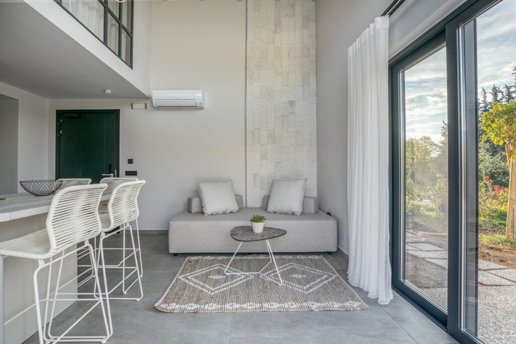 Το Πυρ είναι ένα από τα έξυπνα διακοσμημένα ακίνητα. Με πισίνα και βεράντα καλού μεγέθους, είναι ευχάριστο να χαλαρώσετε γύρω από την πισίνα που περιβάλλεται από χωράφια και ελαιώνες. Το εσωτερικό έχει τον κύριο χώρο καθιστικού, τραπεζαρίας και κουζίνας με ψηλές οροφές με κομψό μονόχρωμο ντιζάιν στο ισόγειο, με υπνοδωμάτιο με διπλό κρεβάτι και μπάνιο με ντους και μπαλκονόπορτες που ανοίγουν σε βεράντα. Στον ημιώροφο πάνω, προσβάσιμο από μια σκάλα, βρίσκεται ένα επιπλέον υπνοδωμάτιο με διπλό κρεβάτι με ενιαίο μπάνιο με ντους.